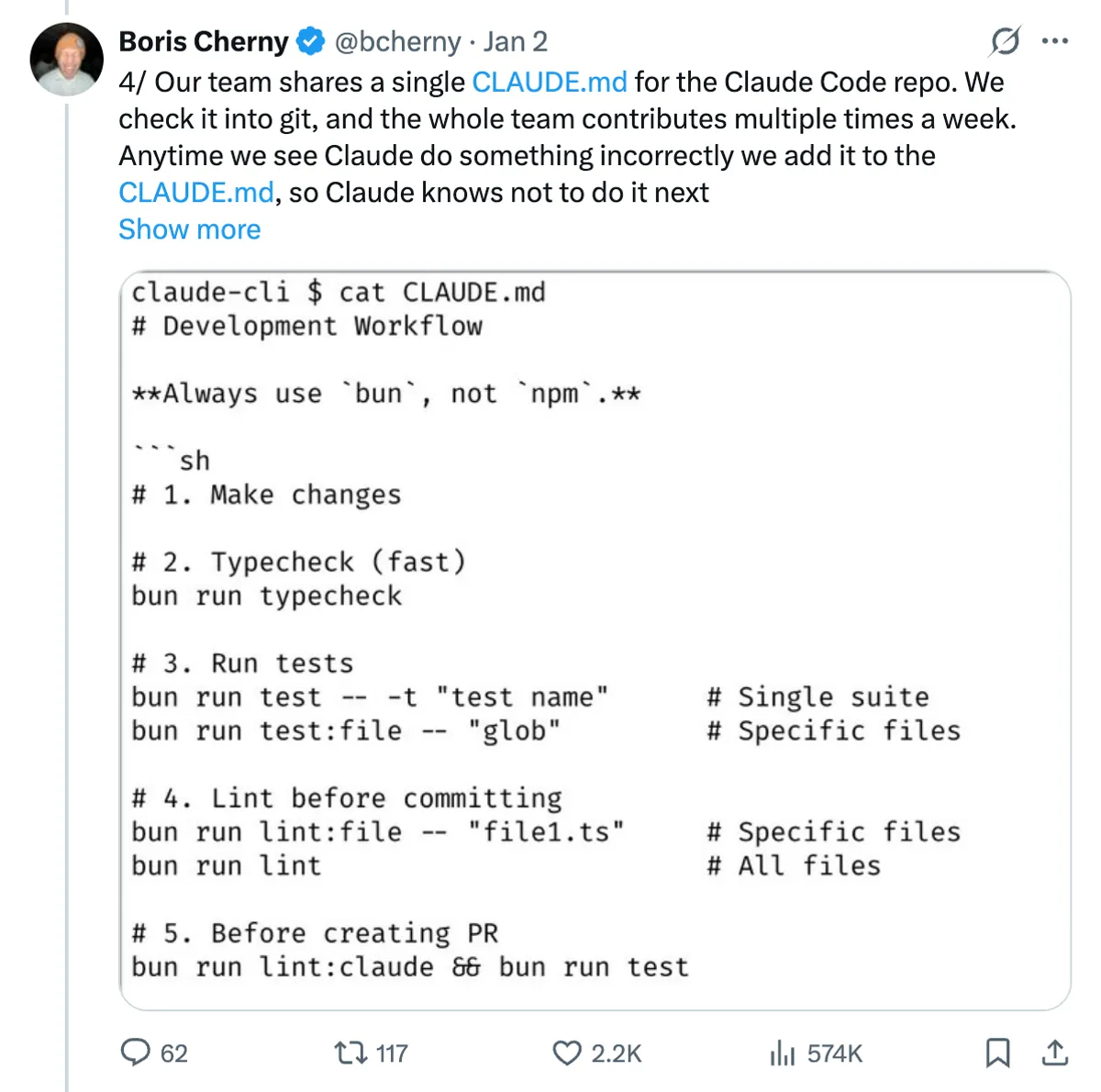 Boris Cherny, the creator of Claude Code, came to my rescue. He posted a great 15-tweet thread about how he personally uses Claude Code. Unlike the rest of us, though, Cherny is using Claude Code to actually write Claude Code. You can see the thread here on Twitter, or here on Threadreader.