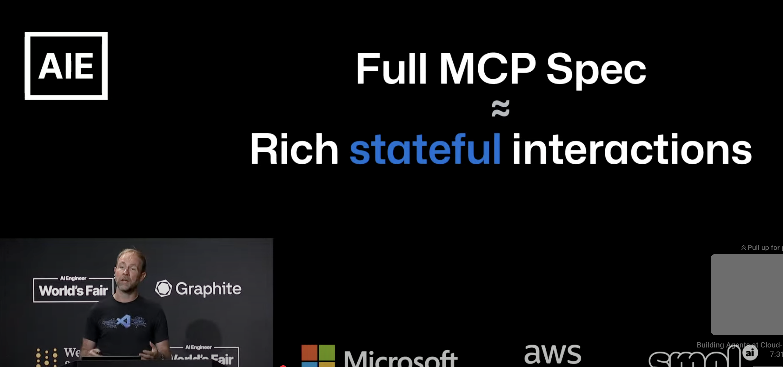 that enable what he calls “rich, stateful interactions.” And guess what he announced for VS Code: full MCP spec support.
