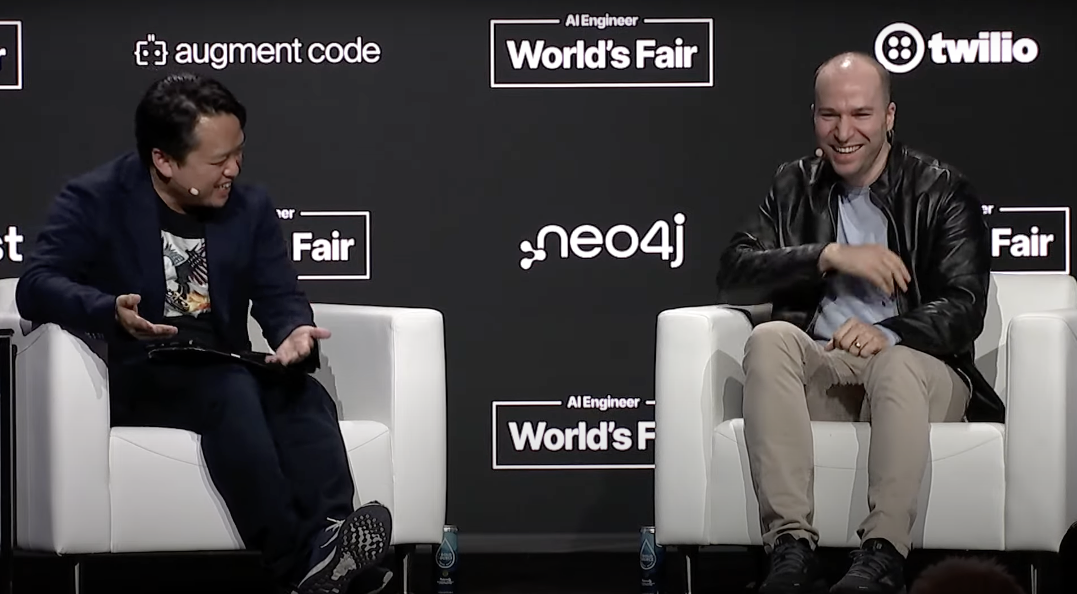 Swyx conducts a fascinating interview of Brockman, with a little help from Nvidia’s Jensen Huang (prerecorded). Having re-watched as part of writing my recap, I picked up a lot I missed in person. There’s so much content here, and I’ll zoom in on questions in the AI Coding domain.
