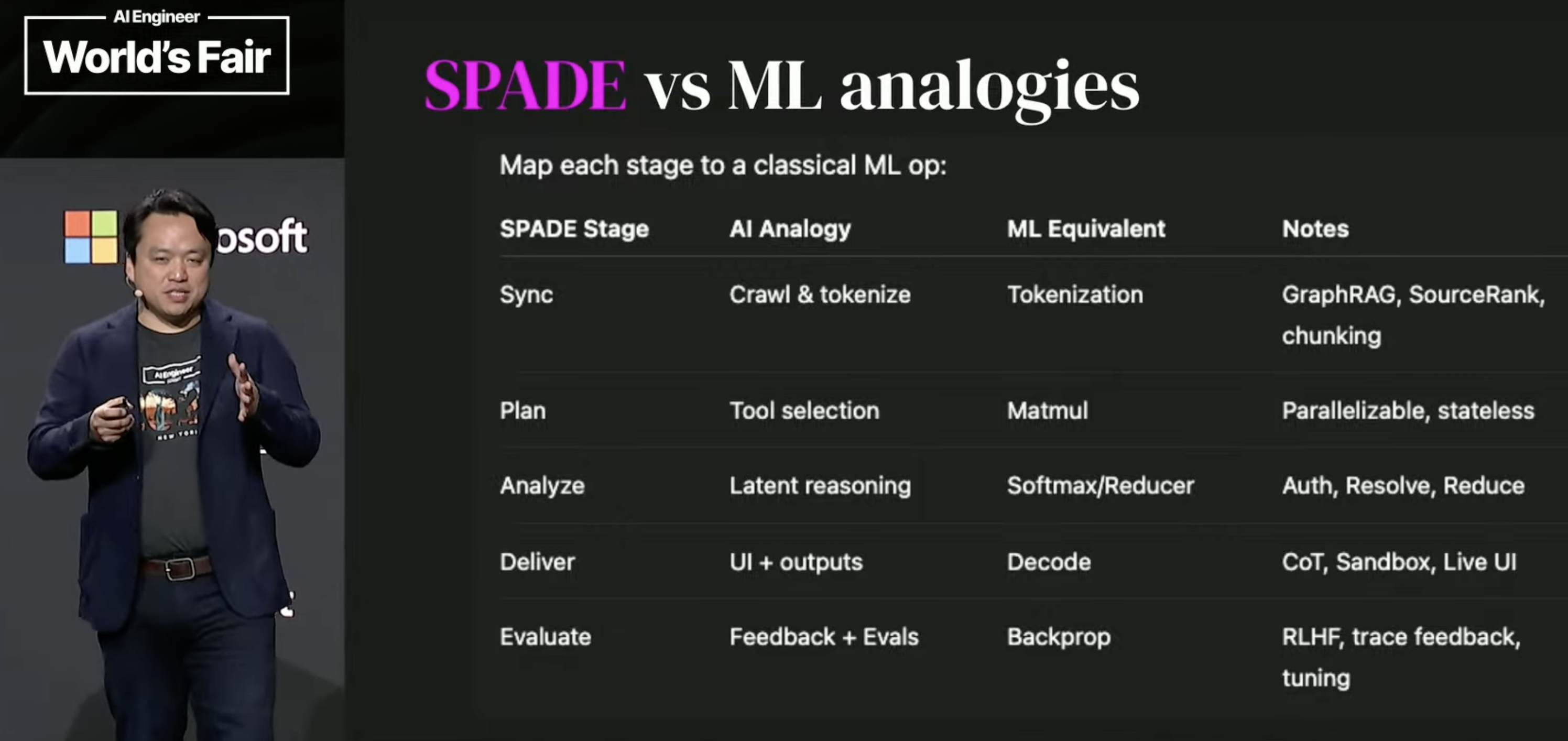 Swyx delivers an incredible overview of the state of the space. He compares today’s state of AI today to early days in physics where the Standard Model was developed and ended up serving physics almost unchanged through today. Swyx proposes a candidate for AI’s own Standard Model, SPADE: