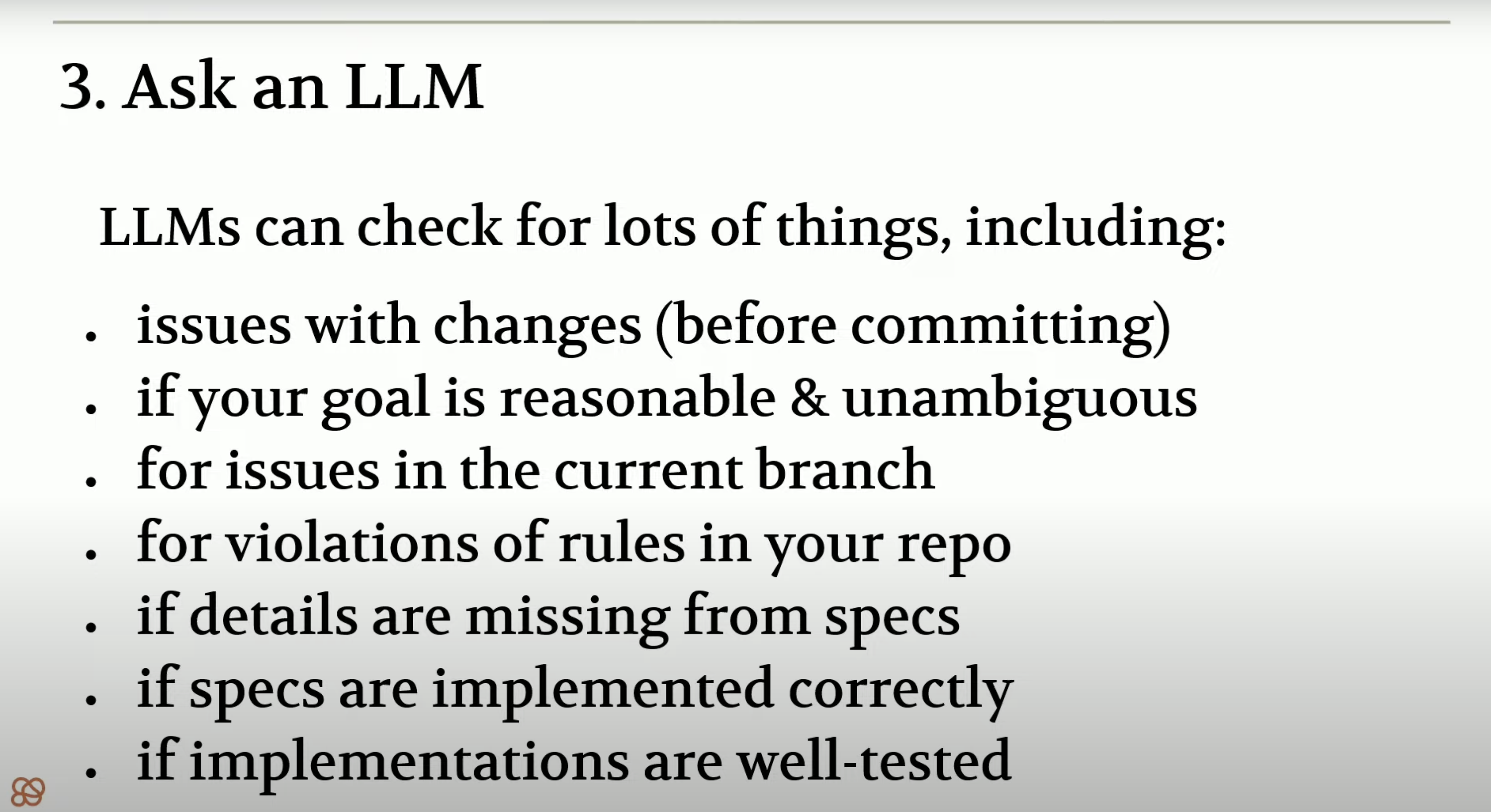 ‘What is wrong with this diff?’ Allowing another Al system to come and take a look at this and understand like hey are there any race conditions? Did you leave your API key in there etc. We want to think about how do we help leverage Al tools not just to generate the code but to help us build trust in that code.