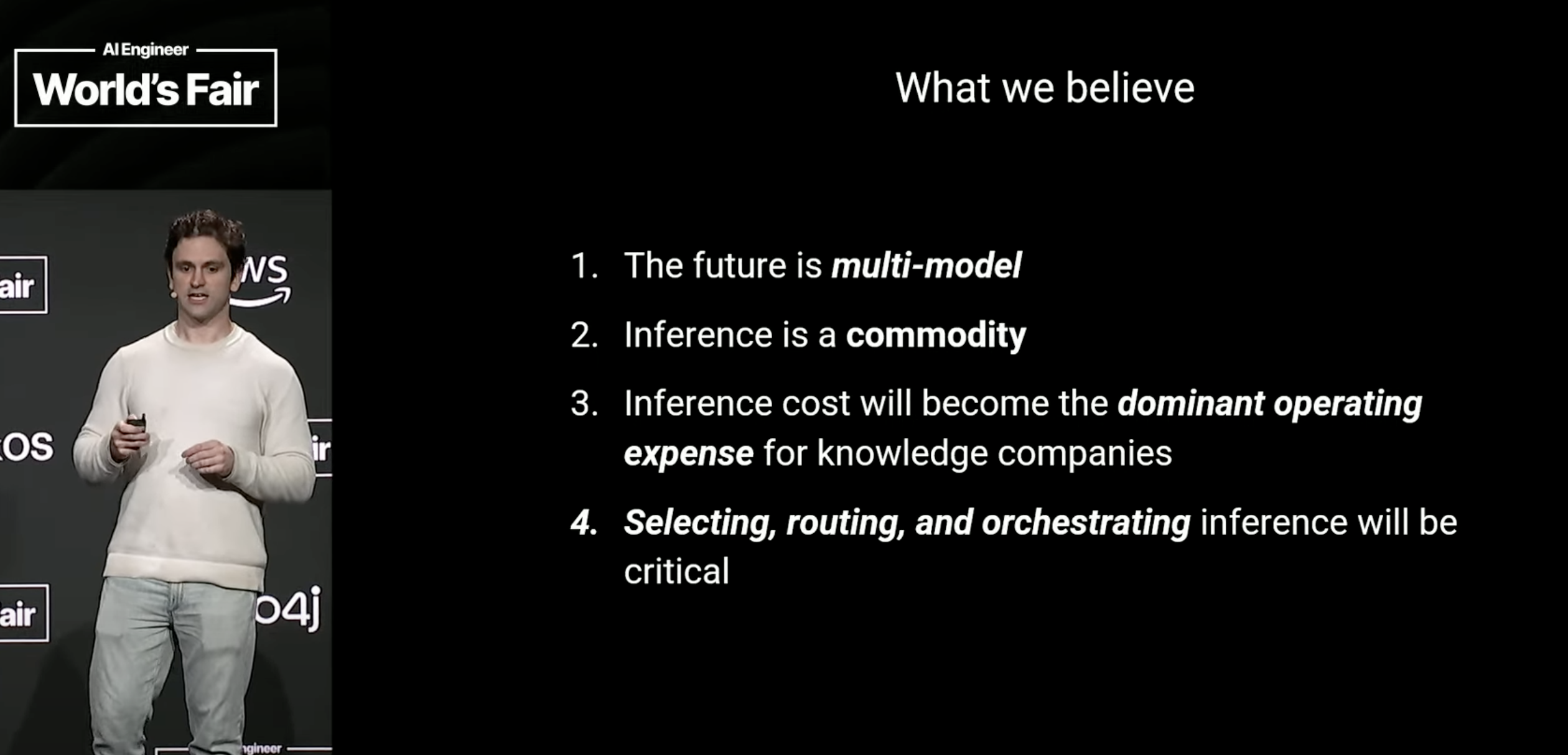 I had quite a few knowledge gaps filled in at the World’s Fair; one big one was near-total ignorance of OpenRouter. In reality, it has taken me World’s Fair plus two months for the OpenRouter concept to really sink in, and for me to understand the use cases where it makes a ton of sense. I’m just about to set up an OpenRouter account for use on a proof of concept project where I want to avoid setting up many individual direct accounts with model makers. I send my thanks to Alex Atallah, founder of OpenRouter, for helping reduce my ignorance through this talk.