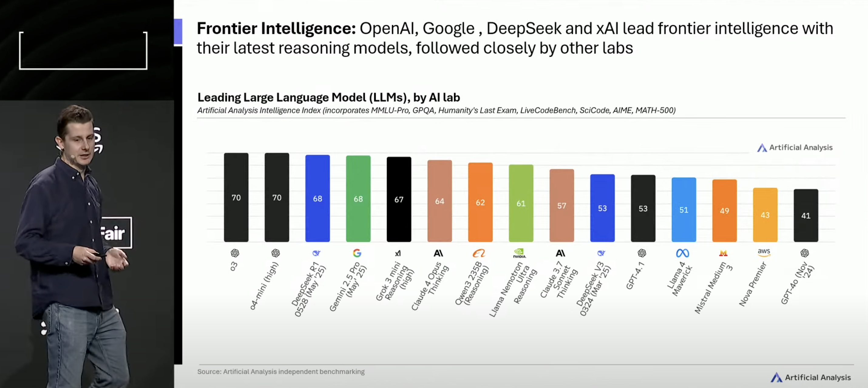 Note: less than 2 months after Cameron’s presentation, there’ve been significant changes in the frontier intelligence rankings: