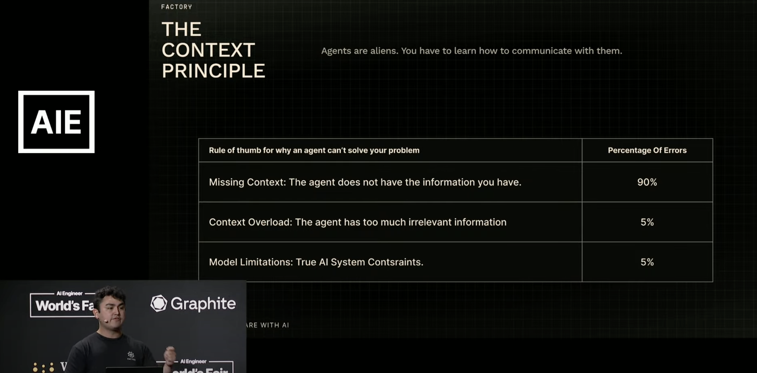 But he goes on to confront the idea that this means vibe coding. He speaks to the importance of context, and working with the kind clientele they do, Factory certainly has good data behind this: