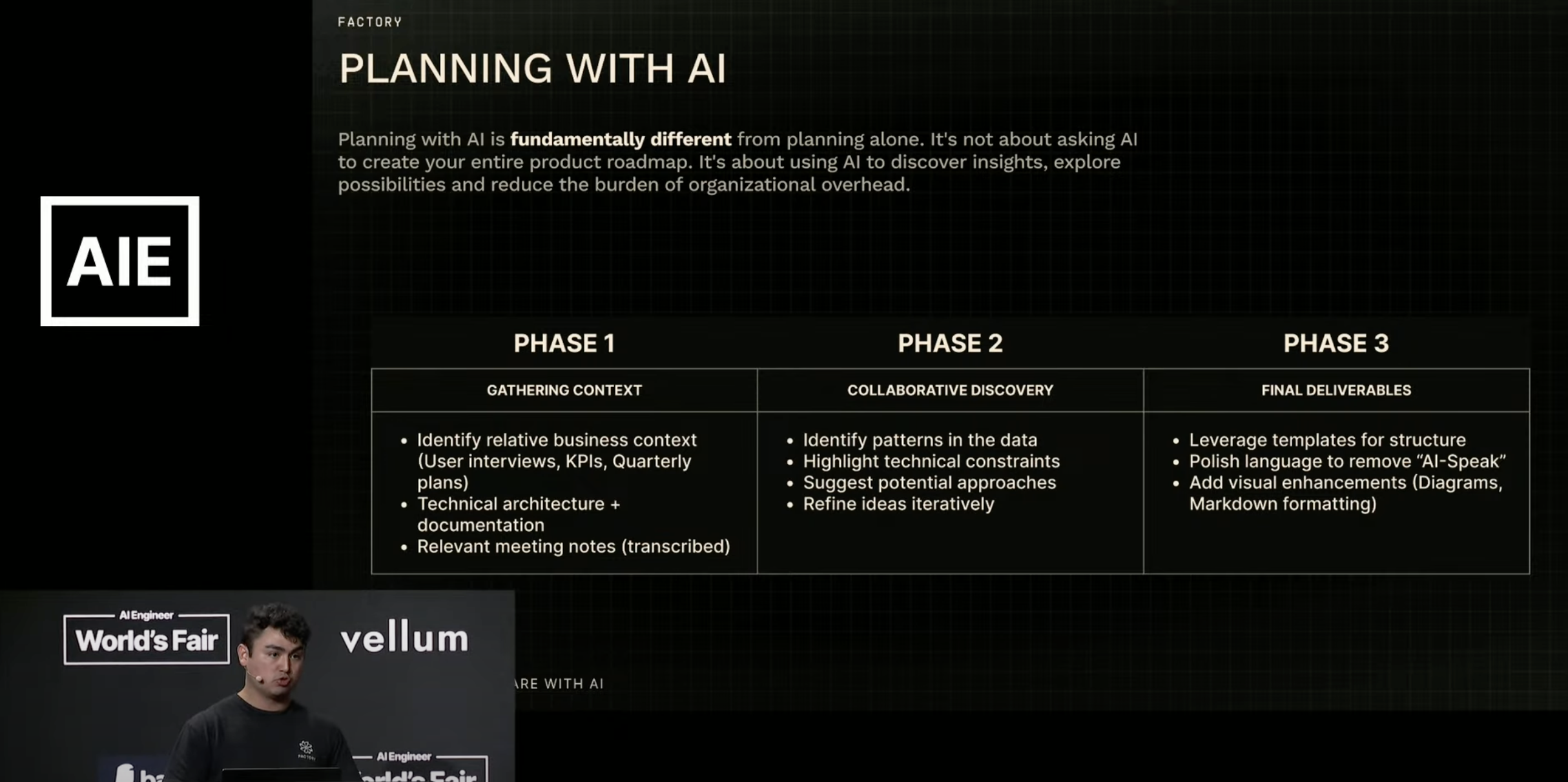 And it’s very clear when Reyes talks about Planning with AI that the F500 problem space Factory works in isn’t Tiny Teams territory: