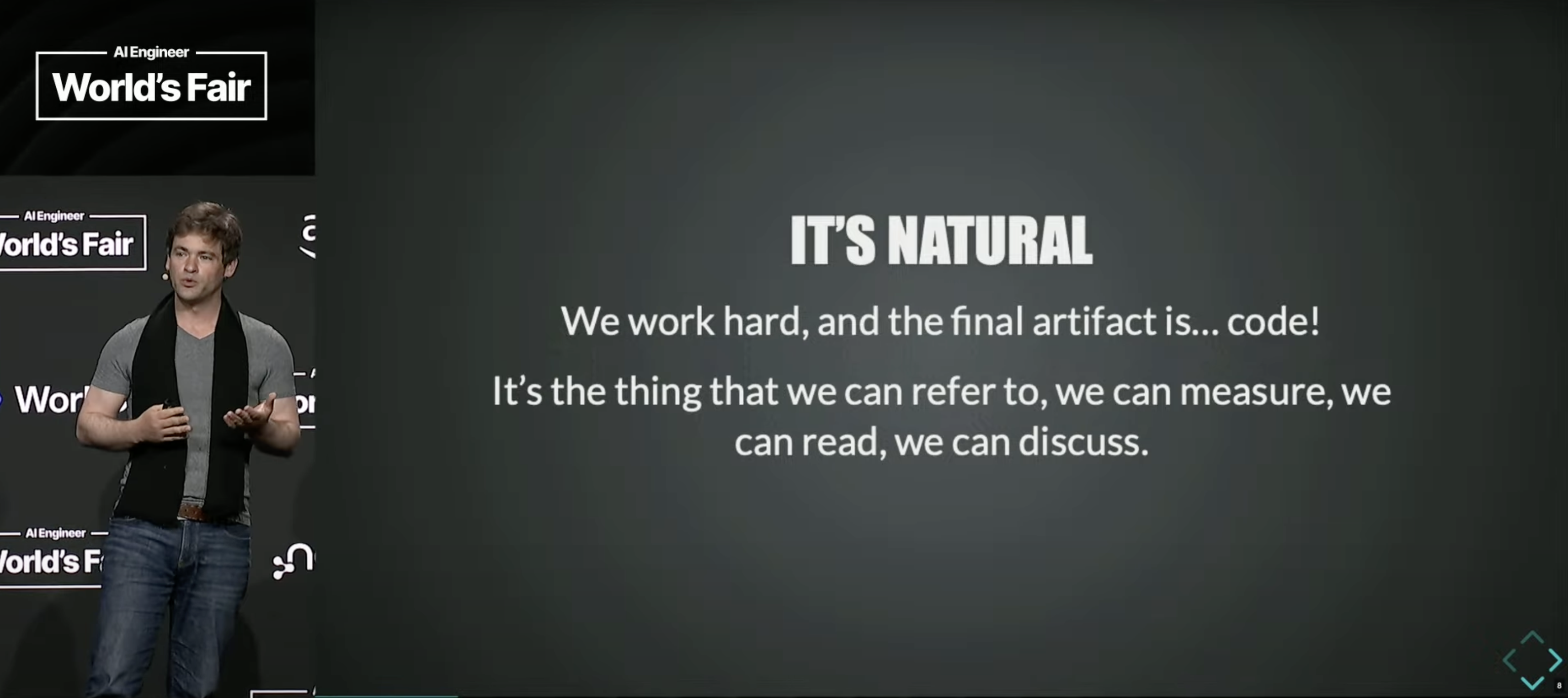 He then confronted this belief, suggesting that code is more like 10-20% of the output.