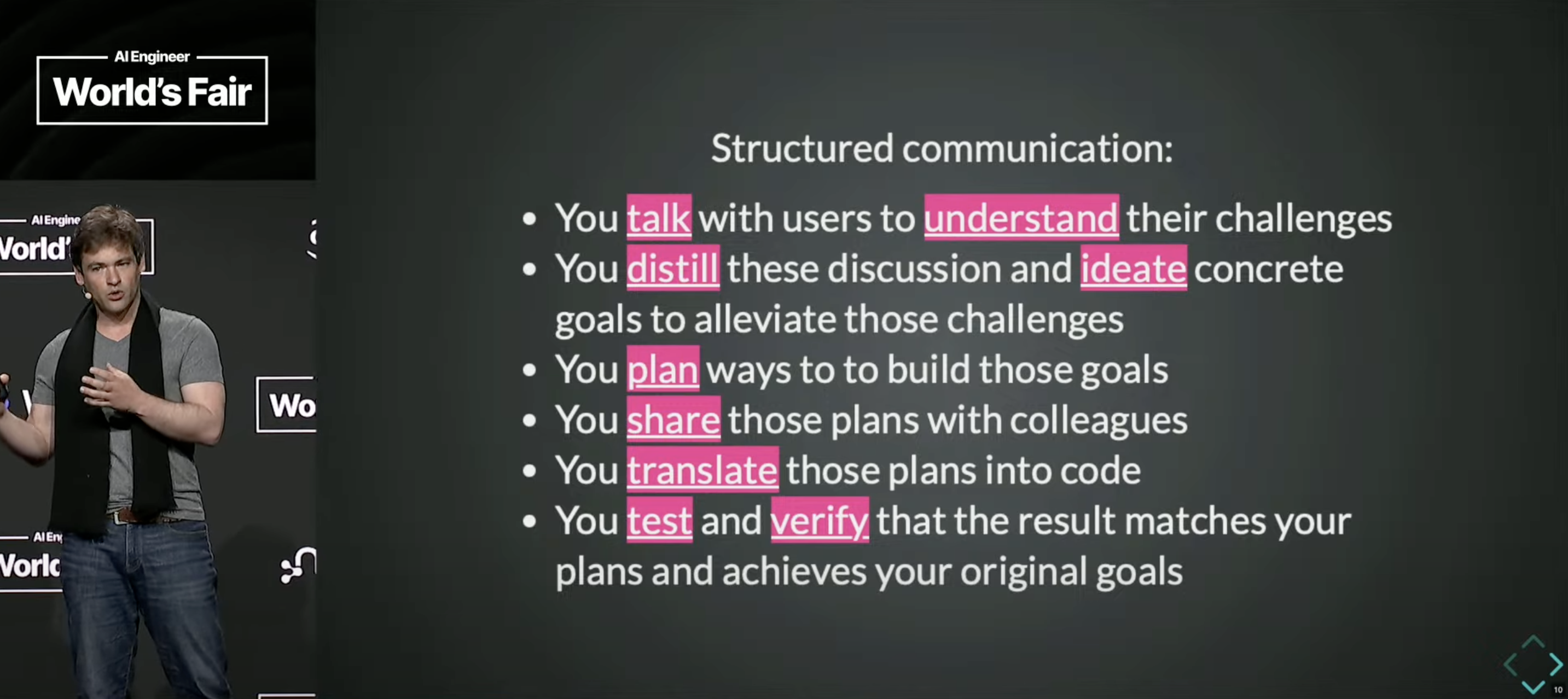 He sees structured communication as the key bottleneck in software engineering, and predicts that it will only get more painful as models get better.