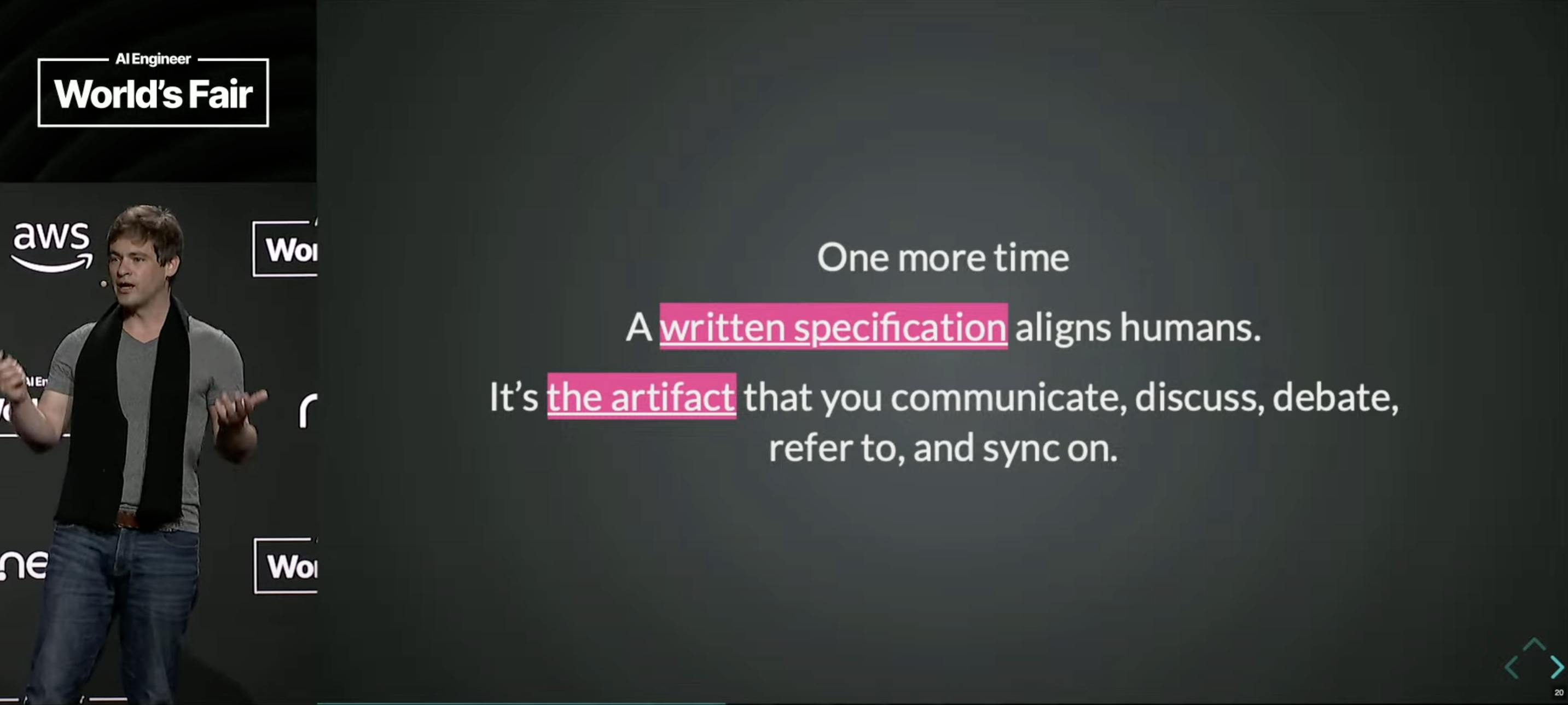 Vibe coding – why it feels great – fundamentally about communication first, coding second. But the weird thing: we communicate via prompts to express our intentions, our values. We then produce an artifact, code, and throw away the valuable stuff, the prompts! That’s like throwing away the source code and just keeping the binary compiled output. This leads Grove to emphasize that written specs are critical, and why: