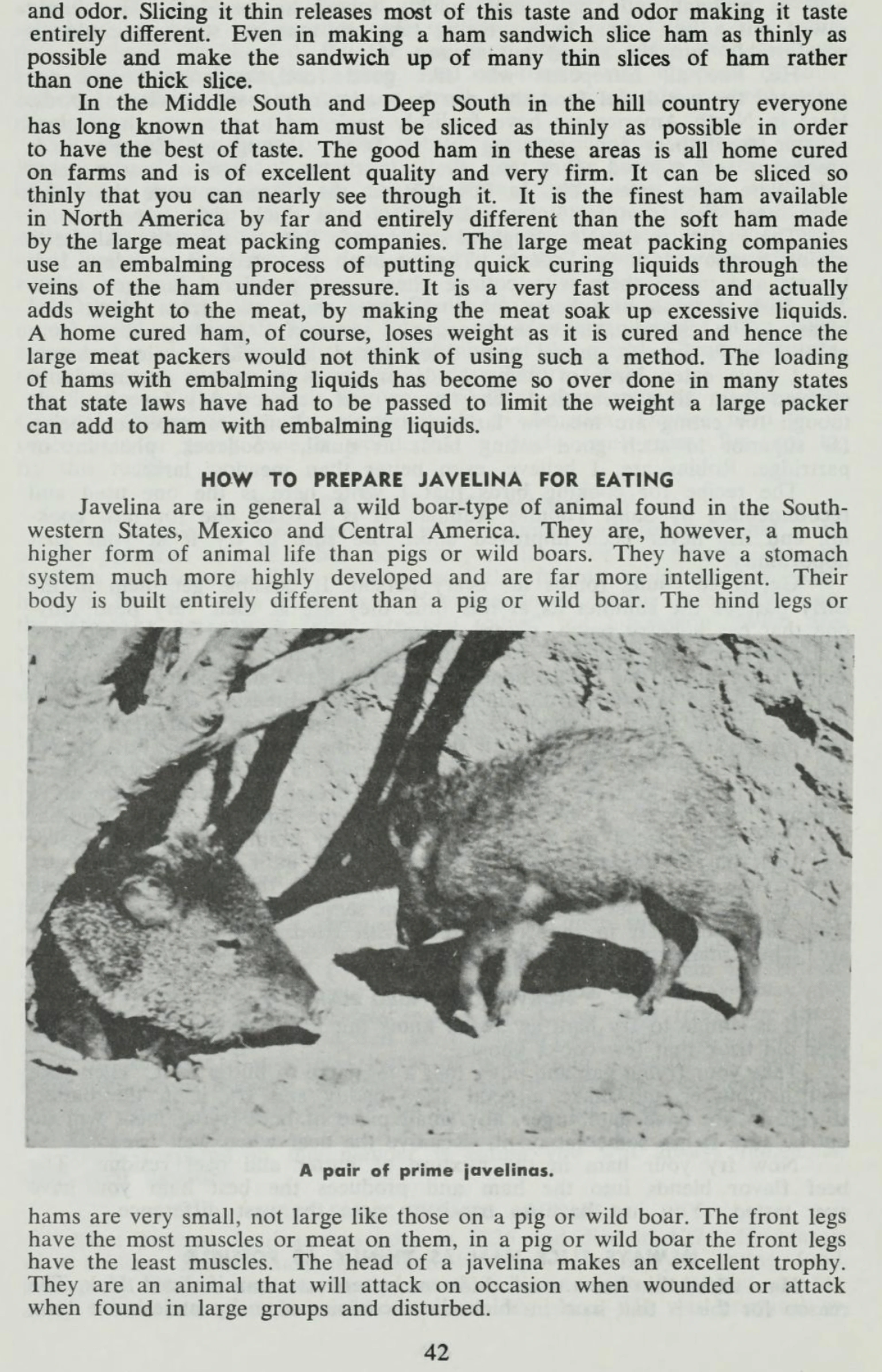 Nothing like mixing in a little nuclear attack drama to spice up the intro page. You can jump to page 206 for that advice around hydrogen or cobalt bomb attacks—presented in the context of preserving tomatoes. Herter’s range is demonstrated in a random selection of pages: 42 (How to Prepare Javelina) and 223 (Fisherman’s Wharf French bread).