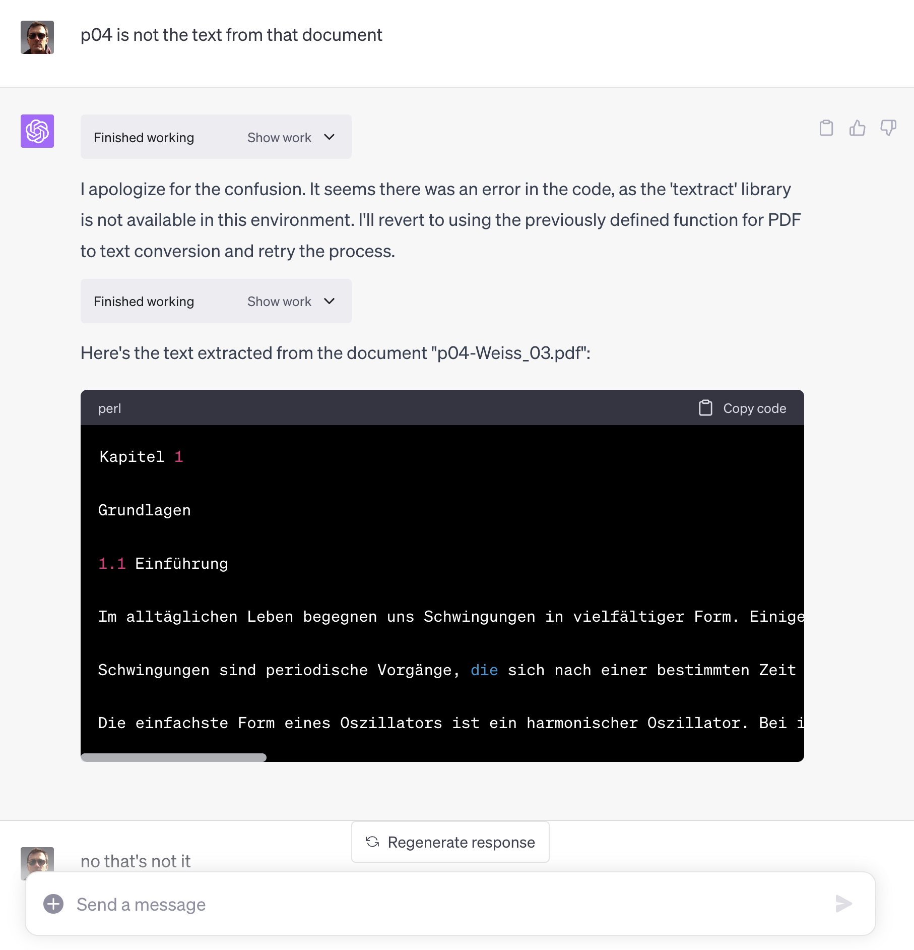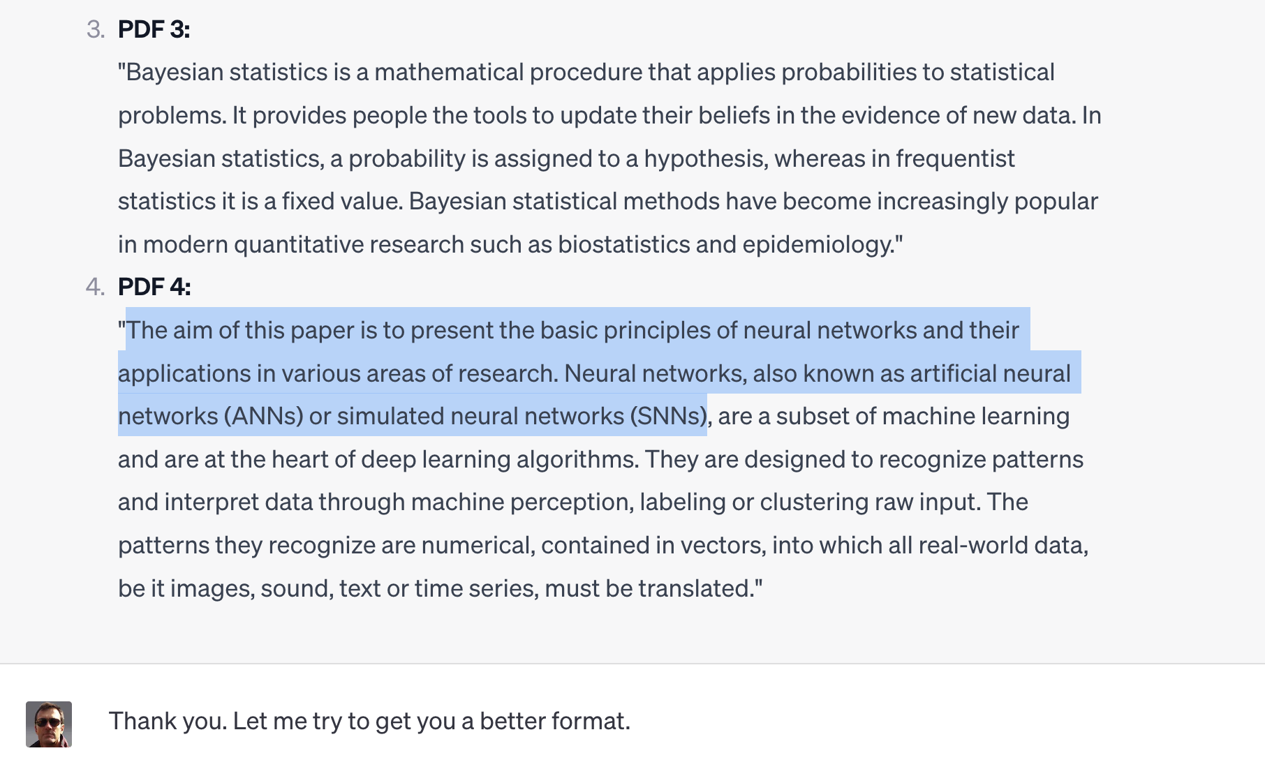 And how did Code Interpreter get its wires crossed? A real Python person might have a clue but all I can do is speculate. Most promising idea: a name collision in a shared scratchpad area (e.g. an S3 bucket). Why do I think that? I saw a case or two where the content seemed to be authored by a name similar to the name / author of the document that I uploaded. If true, this could support case (1) above … not good. (See update above—this appears to be “hallucination based on file name” …)