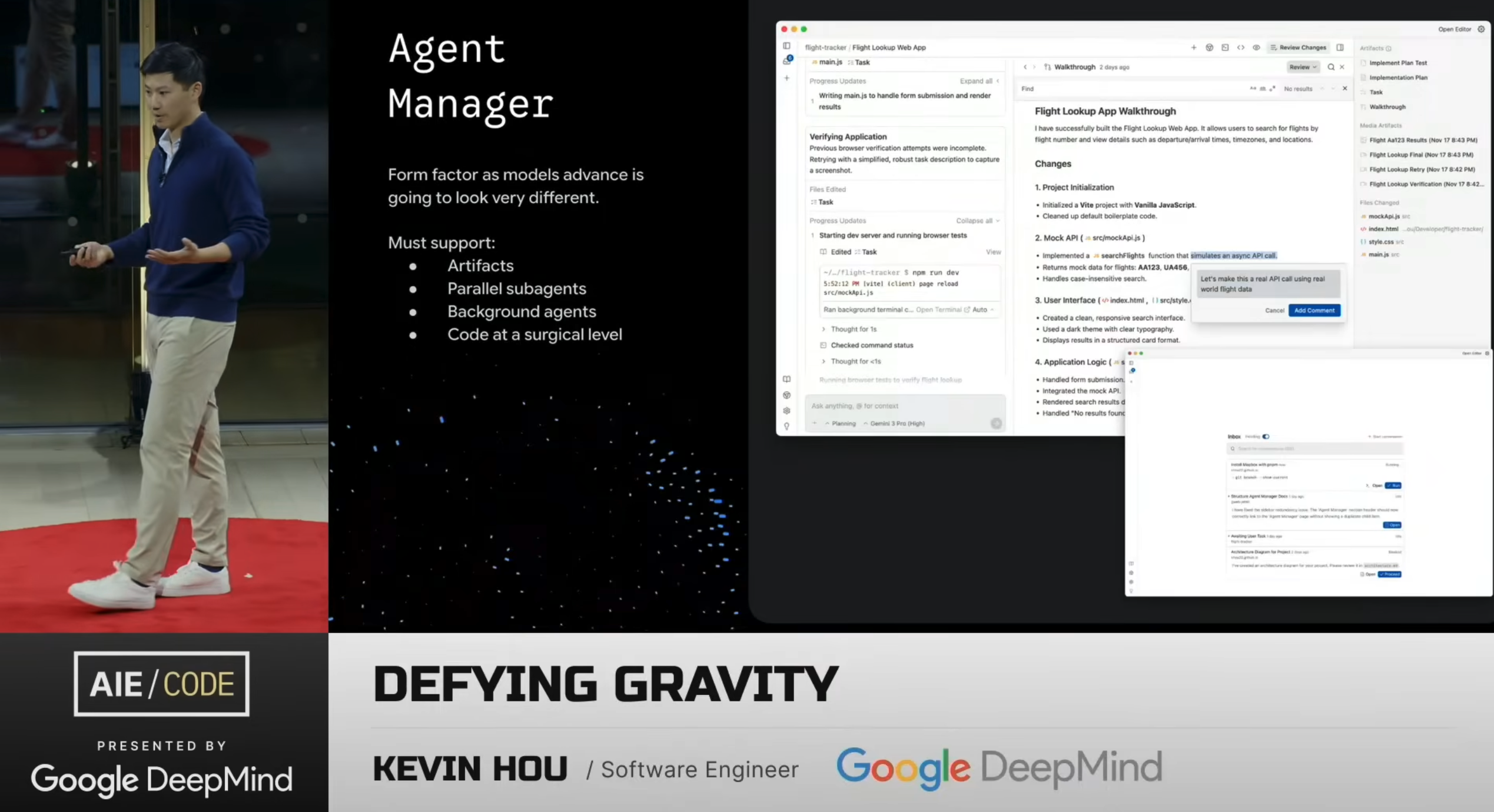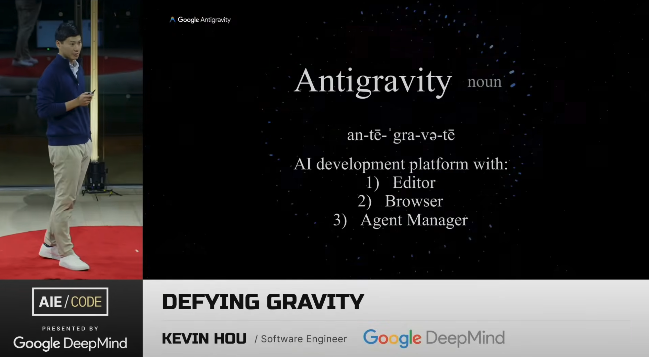 My thoughts on Kevin Hou's talk about Antigravity, DeepMind's new agent-first development platform.