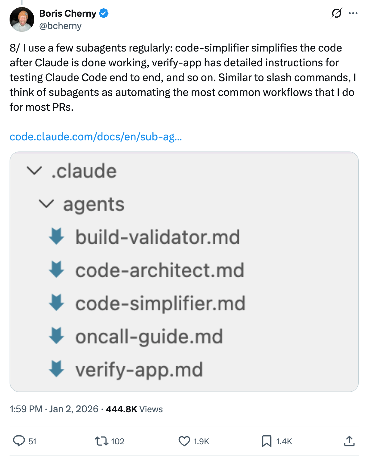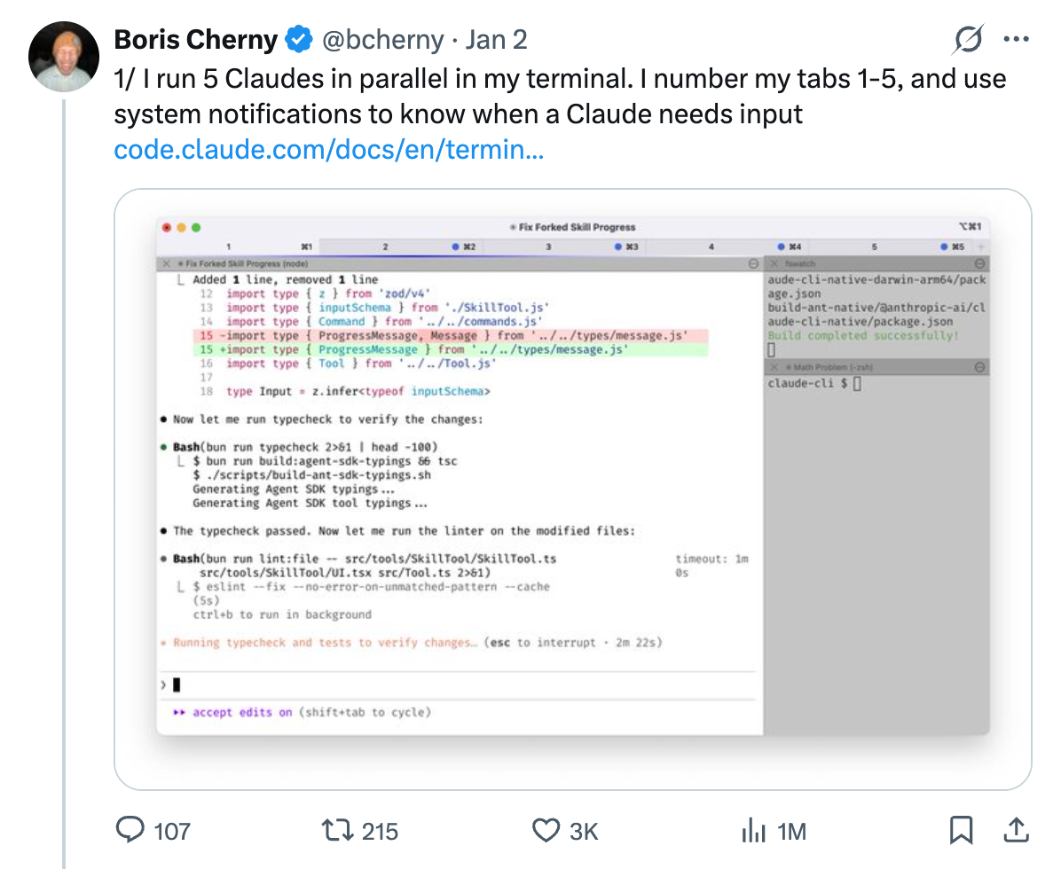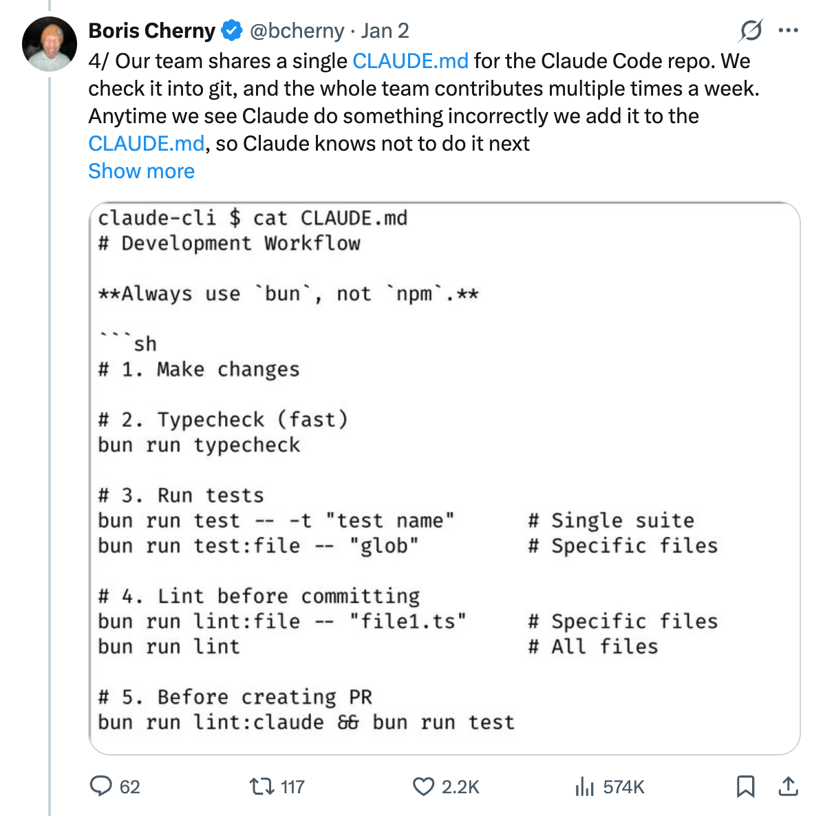 Boris Cherny, the creator of Claude Code, came to my rescue. He posted a great 15-tweet thread about how he personally uses Claude Code. Unlike the rest of us, though, Cherny is using Claude Code to actually write Claude Code. You can see the thread here on Twitter, or here on Threadreader.