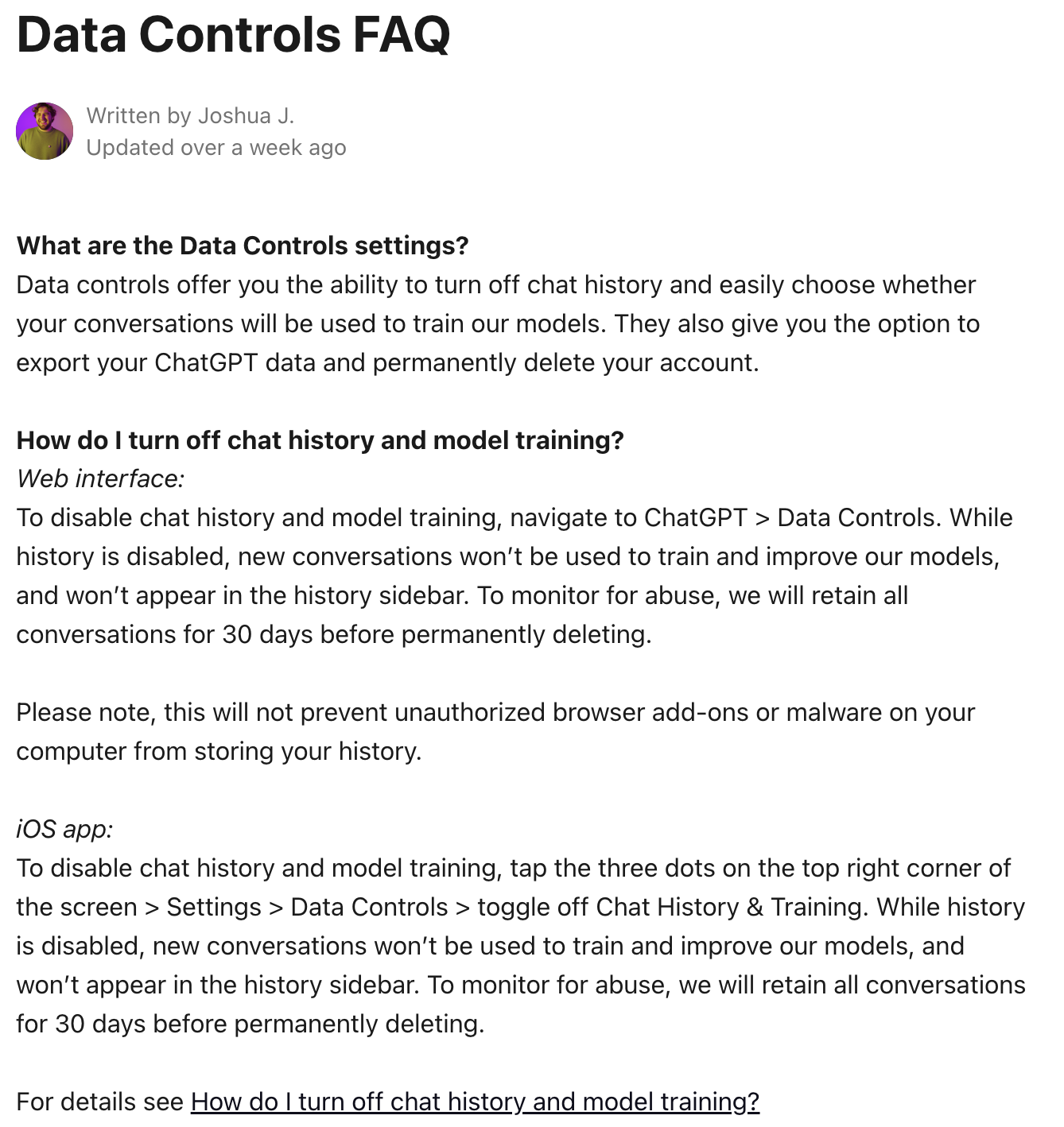 In a conversation with a venture partner yesterday, I was talking up the value that ChatGPT can bring to knowledge workers. He responded that their firm had a policy against putting any confidential data into ChatGPT. My reaction was, that applies to the free version and / or the old days, that with the advent of paid subscriptions, OpenAI no longer trained their models using inputs from subscribers.