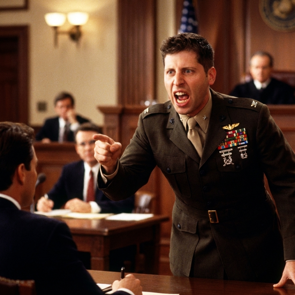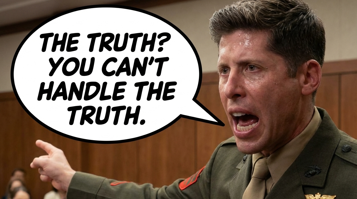 AI-generated image of Colonel Jessep as Sam Altman declaring 'You can't handle the truth'